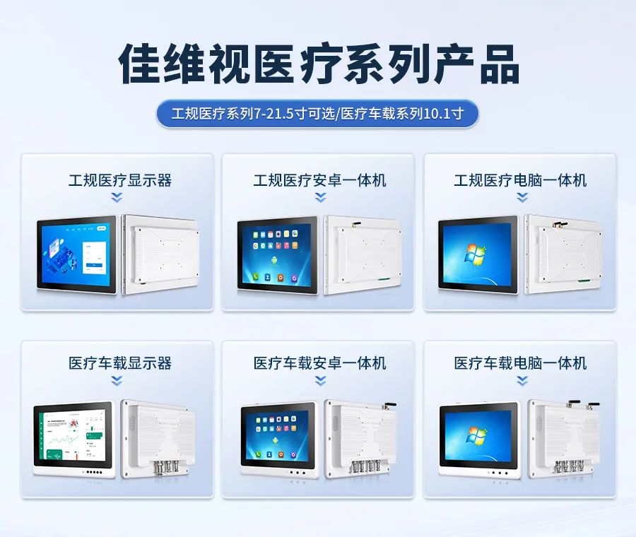 佳維視深入探索醫(yī)療應(yīng)用場景,以強(qiáng)大的硬件基礎(chǔ)優(yōu)勢,開發(fā)出智慧醫(yī)療專線品類,包含醫(yī)療顯示器、醫(yī)療一體機(jī)、醫(yī)療車載系列等顯控產(chǎn)品,具備高性能、多功能、醫(yī)規(guī)認(rèn)證等特征。